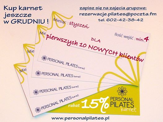 Dla 10 NOWYCH osób, które jeszcze w grudniu zdecydują się wykupić karnet na styczeń przygotowaliśmy specjalną ofertę - 15 % na pierwszy karnet